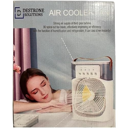 ₹6,099.00 (as of December 4, 2025 21:51 GMT +05:30 - More infoProduct prices and availability are accurate as of the date/time indicated and are subject to change. Any price and availability information displayed on [relevant Amazon Site(s), as applicable] at the time of purchase will apply to the purchase of this product.)DESTRONE SOLUTIONS Mini Cooler for Room Cooling AC Portable Mini Fan Artic Cooler with 7 Colors LED Light, 1/2/3 H Timer, 3 Wind Speeds and 3 Spray Modes for Office,Home,Dorm,Travel1