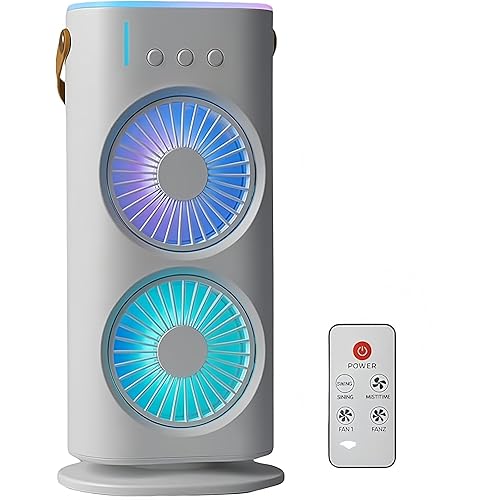 Afazee Portable Double-Ended Spray Fan, 3 Spray Modes, Standing Air Cooler with Humidifier, 300ml Tank, USB Powered, Multicolor